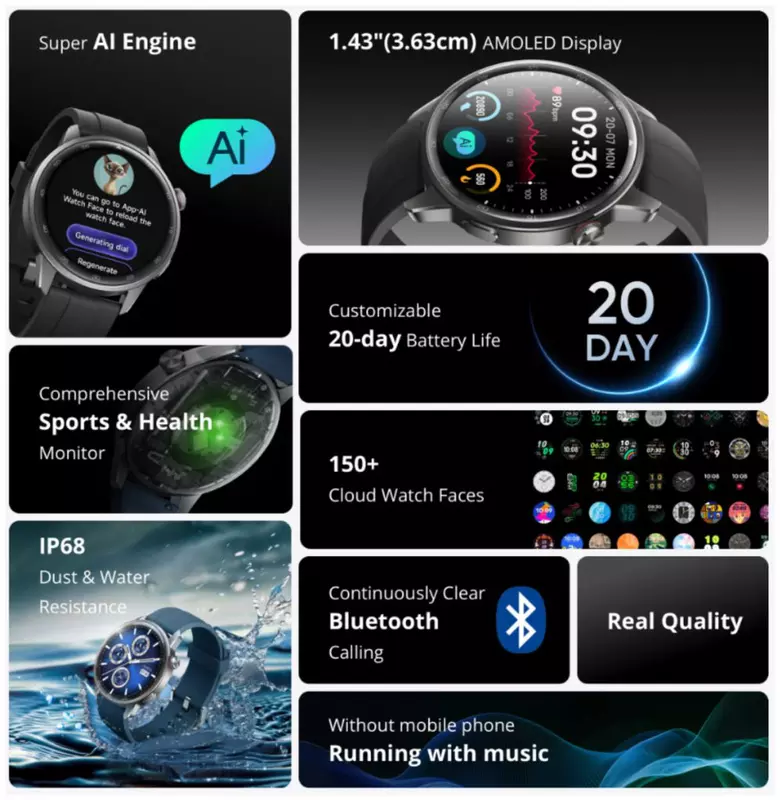 Nowość została nazwana realme Watch S2. Gadżet ma okrągły wyświetlacz o przekątnej 1,43″. Ekran ma matrycę AMOLED o jasności do 600 nitów i obsługuje ponad 150 tarcz.