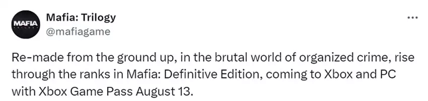 Twórcy gry poinformowali, że remake kultowej dramatycznej gry o sprawach amerykańsko-włoskiej mafii 13 sierpnia będzie dostępny dla subskrybentów Game Pass na konsolach Xbox i na PC.