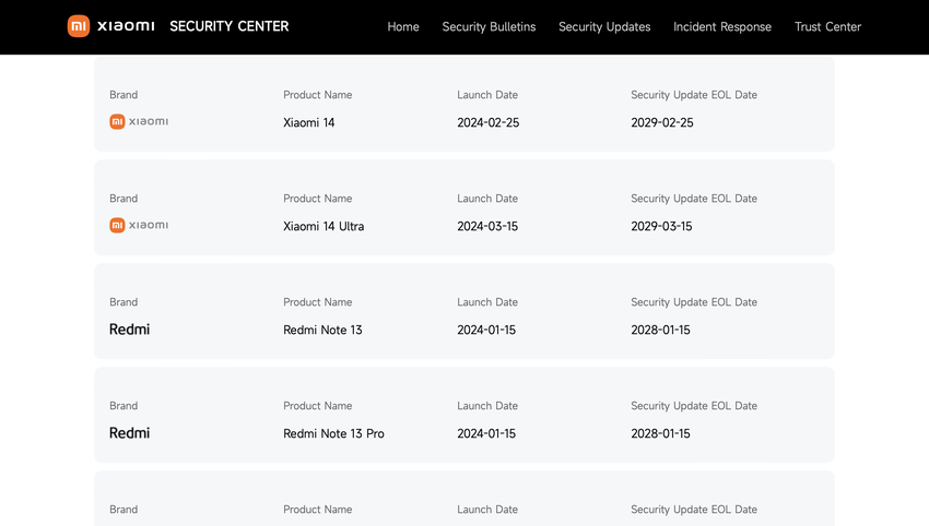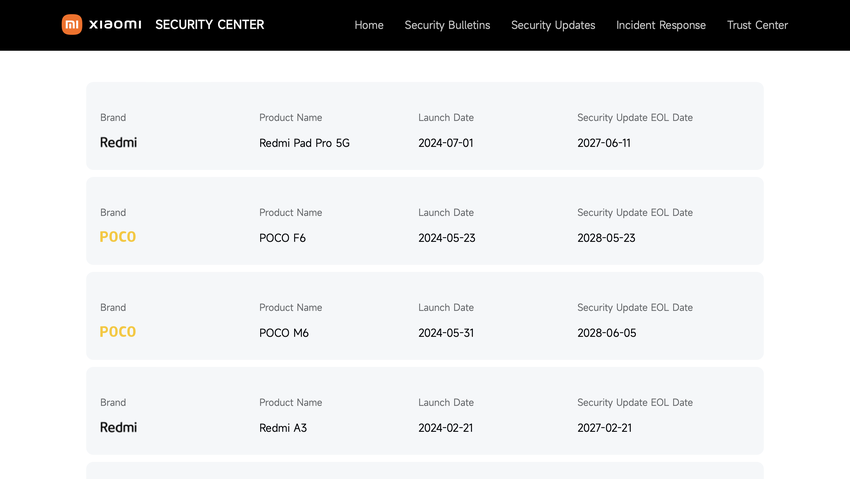 Xiaomi zaktualizowało swoją stronę Centrum Bezpieczeństwa, gdzie ujawniło harmonogram wsparcia dla smartfonów na rynku globalnym.