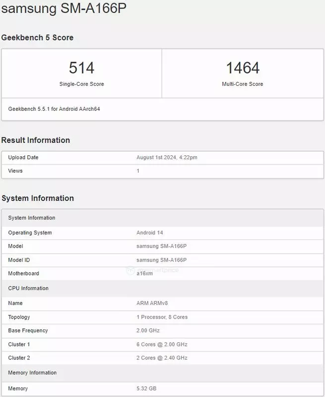 Mówimy o Galaxy A16 5G. Smartfon o numerze modelu SM-A166P pojawił się w bazie danych testu wydajności Geekbench. Według raportu gadżet otrzyma nowy procesor - MediaTek Dimensity 6300. Dla porównania, Galaxy A15 5G jest wyposażony w układ Dimensity 6100+/Helio G99 (w zależności od rynku).