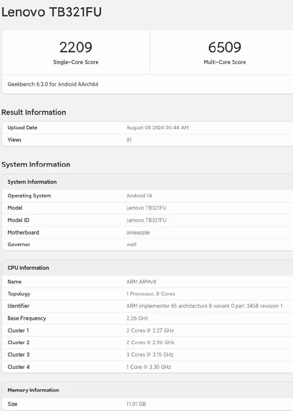 Informacją podzielił się insider Digital Chat Station. Lenovo już testuje nowość w Geekbench z numerem modelu TB321FU. Według raportu, Legion Y700 (2024) będzie obsługiwał obecny flagowy procesor Snapdragon 8 Gen 3. Ponadto urządzenie otrzyma 12 GB pamięci RAM i system operacyjny Android 14 po wyjęciu z pudełka. Niestety nie ma jeszcze żadnych innych informacji na temat nowości.