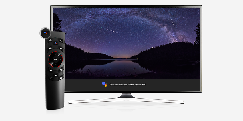 Google Assistant i aktywowane głosem zdalne sterowanie pomogą Ci znaleźć programy i filmy według nazwy, oceny, gatunku, popularności lub aktorów. Wyniki wyszukiwania uzyskują zawartość ze wszystkich zainstalowanych aplikacji. Niestety, Google Assistant rozumie tylko 8 języków i nie obsługuje jeszcze języka rosyjskiego i ukraińskiego.