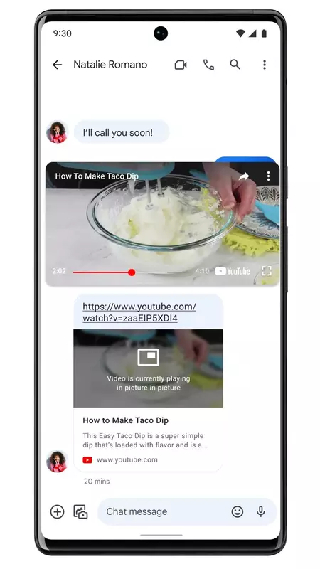 Opcja ta, wprowadzona w październiku 2022 roku, umożliwiała oglądanie filmów z YouTube w pływającym oknie podczas wysyłania wiadomości.