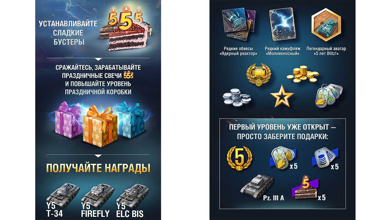 Wargaming chwalił się, że w okresie 5-letnim World of Tanks: Blitz została pobrana 120 milionów razy, a w dniu na serwerach znajduje się 1,5 miliona graczy. Również gra ma więcej treści, i jeśli na starcie było dostępne tylko 90 zbiorników, teraz „park” obejmuje 370 pojazdów opancerzonych. Plus, „Blitz” ma unikatowy zespół narodu, który obejmuje samochody z Warhammer 40,000 i Valkyria Chronicles.