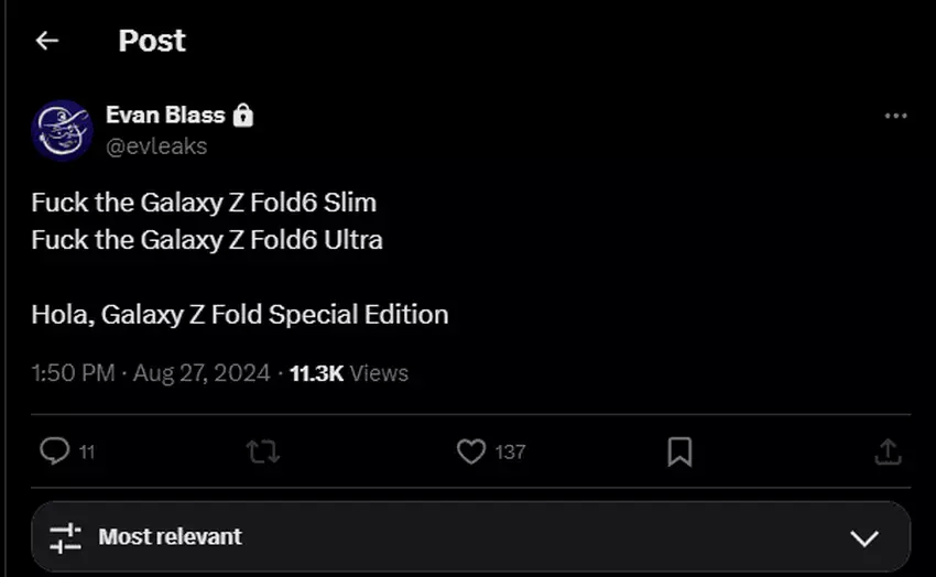 Samsung może wydać specjalną wersję składanego telefonu Galaxy Fold 6 o nazwie Galaxy Fold Special Edition.