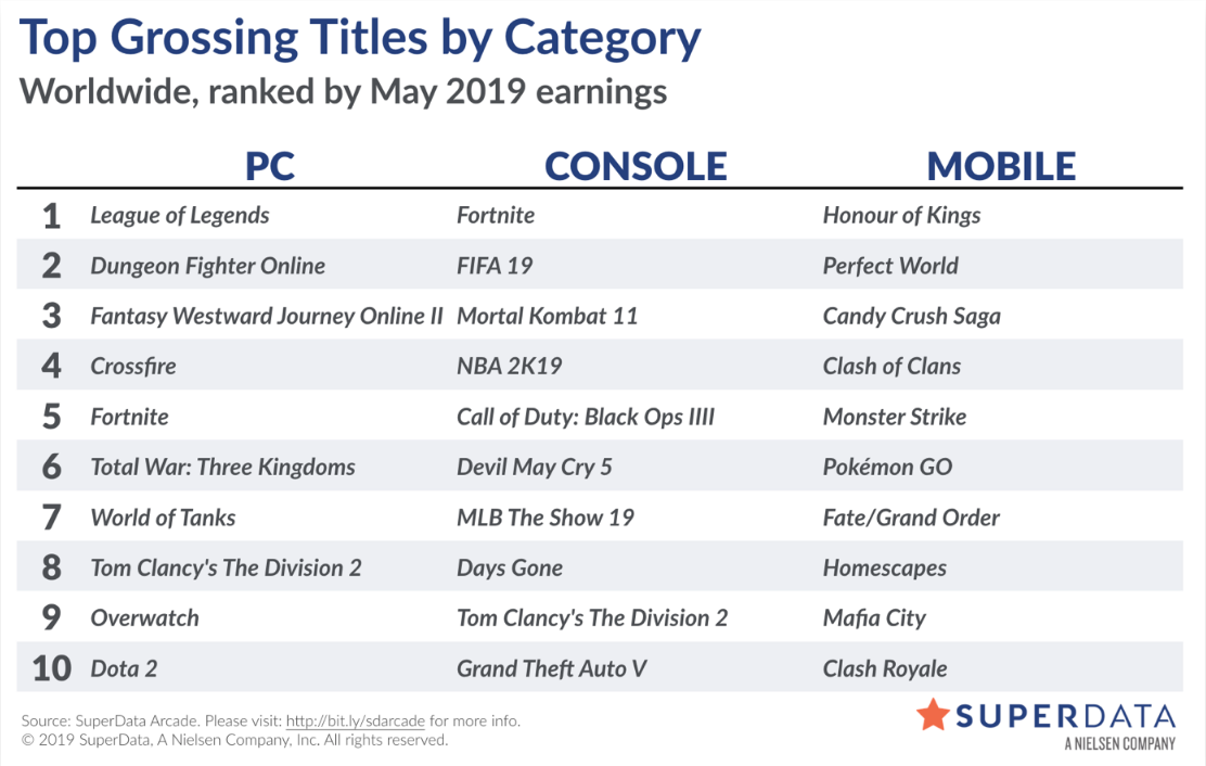 Jednocześnie, pogorszenie dochodów nie przeszkodziło Fortnite dostać się na szczyt listy w zysku na konsolach, wyprzedzając Fifa 19 i Mortal Kombat 11. Na platformie PC, gdzie jest League of Legends, gra osiągnęła tylko do 5 miejsca.