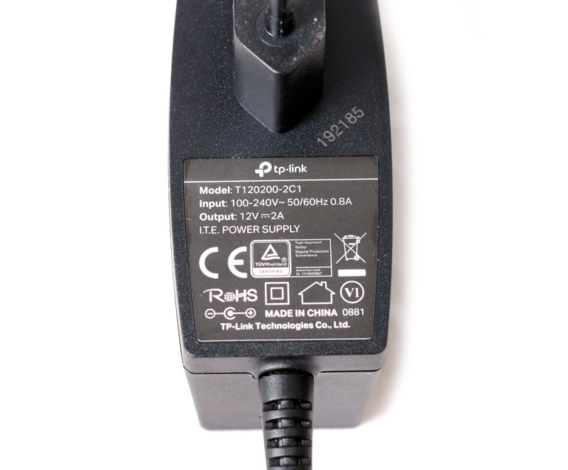 Zasilacz jest zintegrowany z wtyczką sieciową, jest mały i dość lekki, ponieważ, w przeciwieństwie do pięciofalowego zasilacza AC3150, wytwarza „tylko” 2 A przy napięciu 12 V. Długość kabla (nieusuwalna) wynosi półtora metra, w większości przypadków będzie to wystarczające.