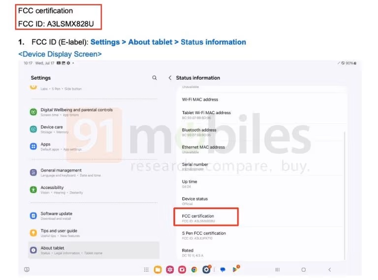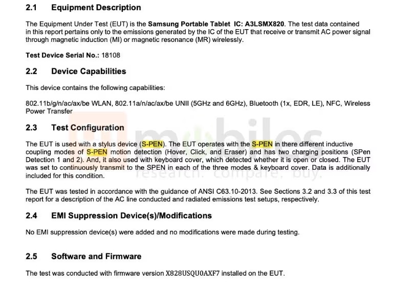 Galaxy Tab S10+ ma numer modelu SM-X820 dla wersji komórkowej i SM-X820U dla USA, podczas gdy Galaxy Tab S10 Ultra ma numer modelu SM-X920. Oba urządzenia będą obsługiwać pióro S-Pen model EJ-PX710, podobne do tego używanego w serii Tab S9.