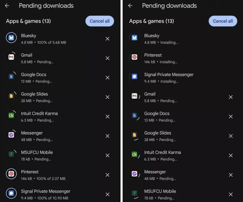 Jeśli istnieją więcej niż trzy aktualizacje, Sklep Play rozpocznie pobieranie i instalowanie trzech z nich jednocześnie, podczas gdy reszta pozostanie w kolejce. Ta innowacja oszczędza użytkownikom dużo czasu.