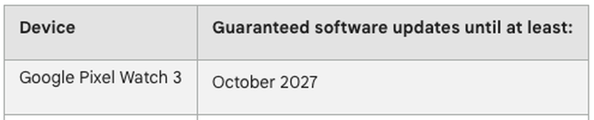 Nawiasem mówiąc, w przeciwieństwie do Androida, dla Wear OS, Google nie rozróżnia "Gwarantowanych aktualizacji wersji systemu operacyjnego" i "Gwarantowanych aktualizacji zabezpieczeń". Są to po prostu "Gwarantowane aktualizacje oprogramowania", które obejmują "aktualizacje zabezpieczeń zegarka Google Pixel Watch, a także mogą zawierać nowe funkcje i inne ulepszenia oprogramowania".