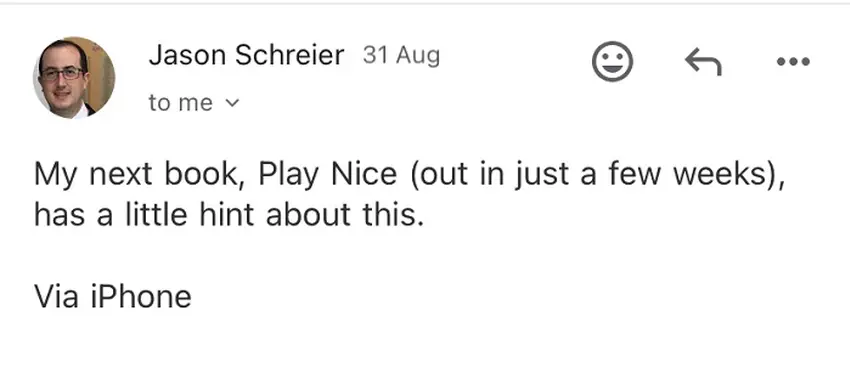 Znany dziennikarz Bloomberga Jason Schreier potwierdził fakt, że Blizzard pracuje nad nową grą, nie zapominając o promocji swojej książki Play Nice: The Rise, Fall, and Future of Blizzard Entertainment, która ukaże się za kilka tygodni. Stwierdził on, że w książce czytelnicy znajdą informacje na temat tej niezapowiedzianej strzelanki, RPG lub gry na styku tych gatunków.