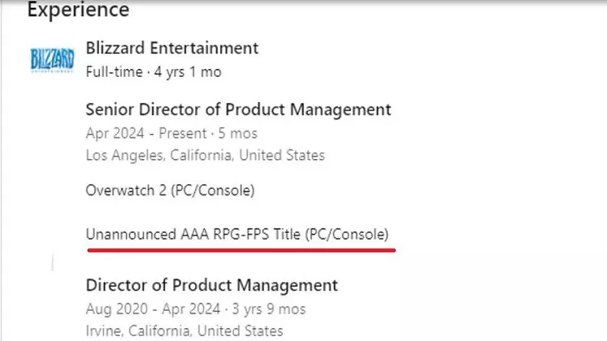 Informacja ta pochodziła z profilu LinkedIn kierownika produkcji Blizzarda, Chrisa McCabe'a, który wkrótce edytował swoją stronę.