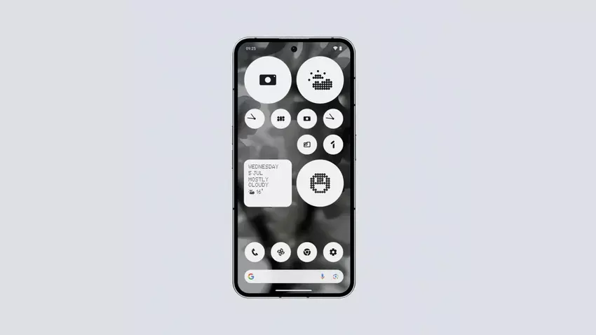 Czcionka matrycowa, która była wcześniej używana w wielu obszarach interfejsu, jest teraz mniej zauważalna. Na przykład nagłówki ustawień i zegar na ekranie blokady będą używać nowej stylizowanej czcionki. Czcionka matrycowa pozostanie jednak w niektórych obszarach, takich jak logo Nothing i animacja czujnika linii papilarnych.