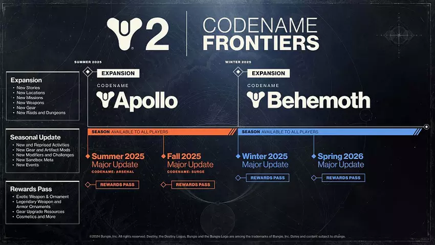 Nie wiemy jeszcze zbyt wiele o Behemocie, ale Bungie zapowiedziało, że Destiny 2 będzie nadal otrzymywać duże darmowe dodatki, a na 2025 rok zaplanowano cztery takie aktualizacje, w których twórcy dodadzą nową zawartość, zaktualizują balans, zaoferują nowe zadania i nagrody oraz wprowadzą inne zmiany.
