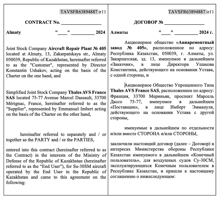 Oczywiście, dziwnym zbiegiem okoliczności, umowa ta zawiera niemal te same usługi, co kontrakt między Thales a kazachską fabryką samolotów.