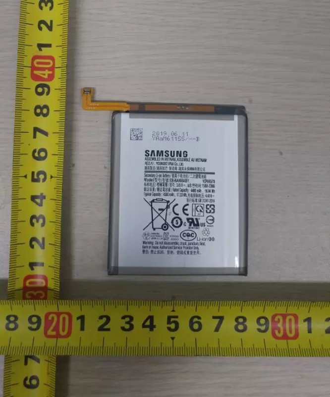 Dziennikarze GalaxyClub znaleźli na stronie internetowej koreańskiego biura certyfikacji obraz z baterią urządzenia. Zgodnie ze zdjęciem flagowy otrzyma energochłonną baterię na 4500 mAh. Dokładnie taką samą pojemność baterii ma flagowy Galaxy S10 5G i średniej klasy smartfon Galaxy A70. Według plotek, nowy produkt zostanie wydany w dwóch wersjach o numerach SM-A908 i SM-A905. Niestety nie wiadomo jeszcze, czy taka bateria zostanie zainstalowana w obu modelach, czy tylko w jednym.