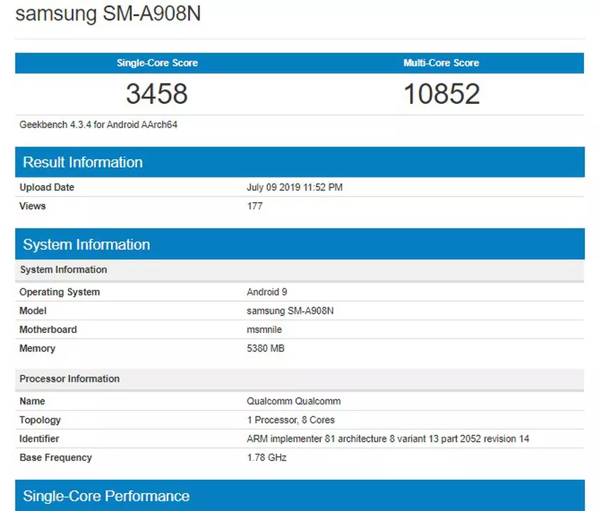 W bazie danych popularnego testu wydajności Geekbench zauważono flagowy smartfon Samsung Galaxy A90 5G z numerem modelu SM-A908N.