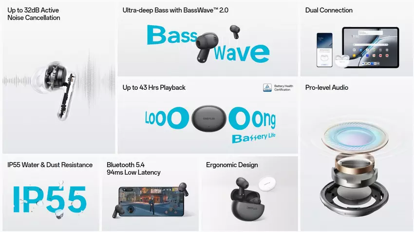 OnePlus Nord Buds 3 oferują aktywny system redukcji szumów, a także tryb przezroczystości. W urządzeniu zainstalowano wiele mikrofonów. Na jednym ładowaniu słuchawki będą działać do 43 godzin (z etui i bez ANC).