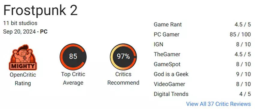 Poza tym Frostpunk 2 jest świetną grą, o czym świadczą oceny na agregatorach: