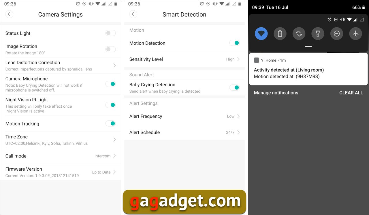 Ale najciekawsze wydarzyło się, gdy próbowaliśmy przetestować monitor płaczu dla dzieci, to znaczy zwykłą nianie elektroniczną. Zgodnie z założeniami projektantów, gdy ten tryb jest włączony, kamera powinna odbierać dźwięki otoczenia i wyodrębniać płacz dzieci, sygnalizując to za pośrednictwem aplikacji dla rodziców. Ale bez względu na to, jak krzyczało nasze sześciomiesięczne dziecko, aparat nie reagował na te decybele. Możliwe, że faktem jest, że dziecko płakało i krzyczało po polsku, kiedy kamera została stworzona wyłącznie dla chińskiego krzyku chińskich dzieci - kto wie, może rozpoznawanie głosu osiągnęło już poziom, gdy urządzenie może odróżnić rasę i narodowość?