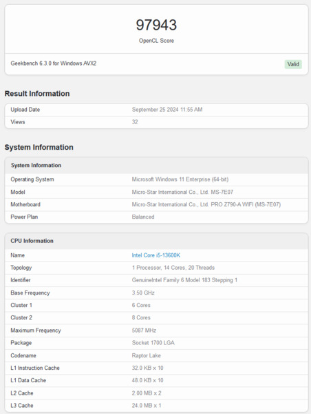 Ten procesor graficzny stał się pierwszym przedstawicielem nowej linii i zademonstrował wyniki: uzyskał 97 943 punkty w teście OpenCL. Pozwala mu to konkurować z GeForce RTX 4060 i Intel Arc A770. W porównaniu do AMD, Intel plasuje się pomiędzy Radeonem RX 7700 XT i RX 7600 XT.