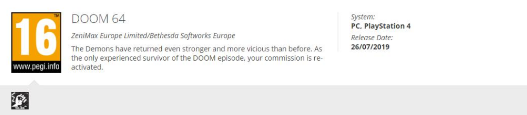 Reporterzy Gematsu zauważyli, że Doom 64 pojawił się w bazie danych komisji PEGI która przypisujące ograniczenia wiekowe dla gier.