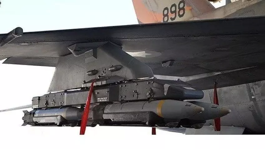 Pociski GBU-39 SDB pod skrzydłem izraelskiego F-16