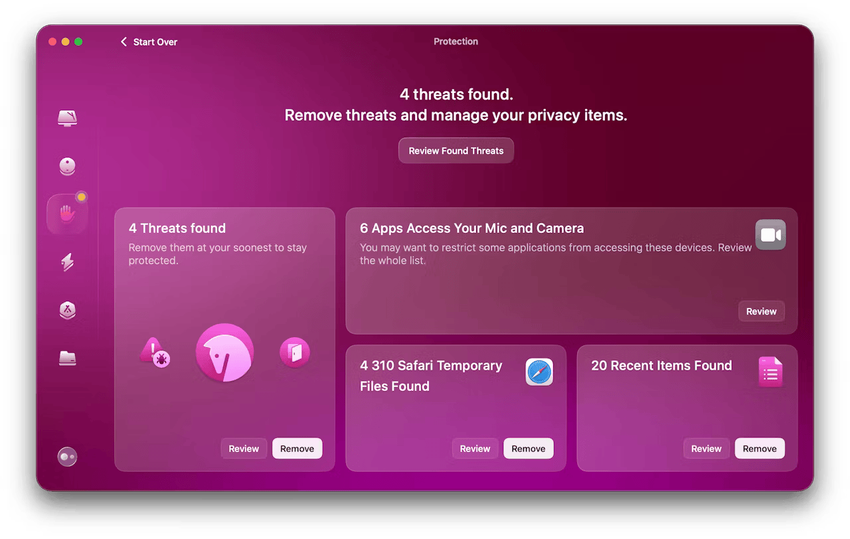 Ochrona - oparty na technologii Moonlock, CleanMyMac zapewnia bezpieczeństwo podczas korzystania z komputera Mac, wykrywając i eliminując nawet najnowsze zagrożenia.