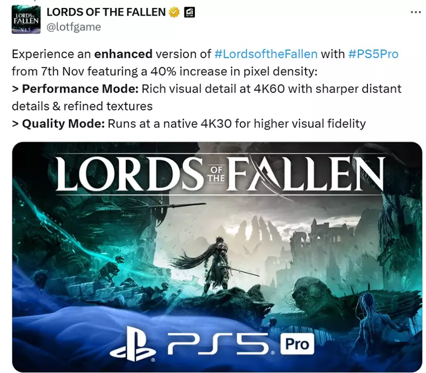 Odpowiednia łatka dla Lords of the Fallen zostanie wydana w dniu premiery PS5 Pro - 7 listopada.