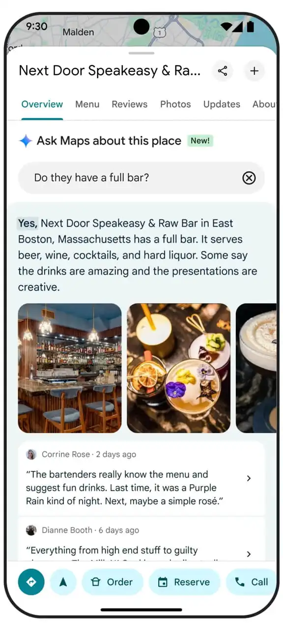 Nowa funkcja Zapytaj Mapy o tę stronę umożliwia zadawanie konkretnych pytań, np. dotyczących atmosfery lub ubioru w danym miejscu. Odpowiedziom towarzyszyć będą zdjęcia i linki do recenzji.