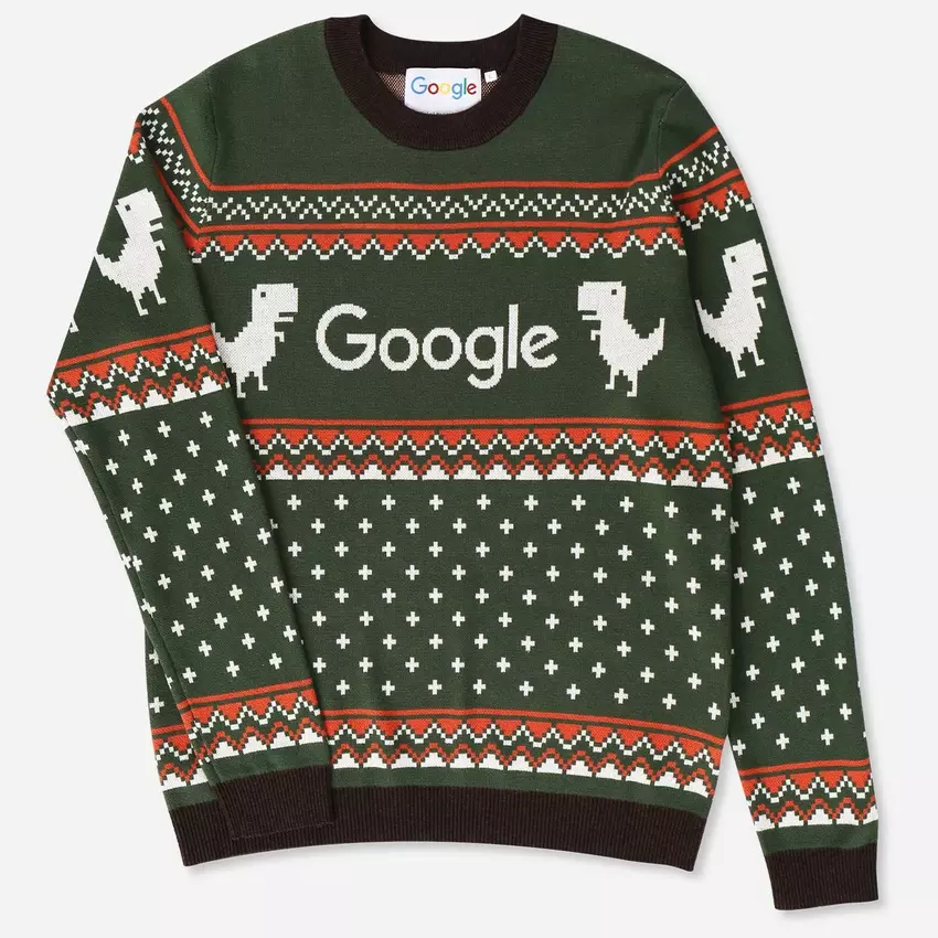 Figurka zachowuje tradycyjne zielone kolory Androida, ale teraz jest uzupełniona świątecznymi elementami. Użytkownicy mogą również kupić stylowy sweter ozdobiony logo Google i wesołego dinozaura Chrome, który kosztuje 79 dolarów.