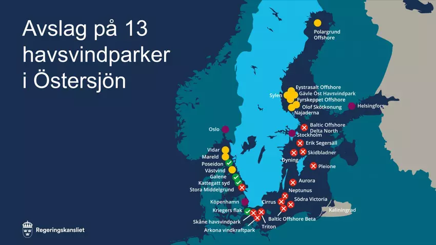 Szwedzki rząd nie wydał zgody na budowę 13 farm wiatrowych na Morzu Bałtyckim ze względu na zagrożenie dla bezpieczeństwa narodowego ze strony Rosji.