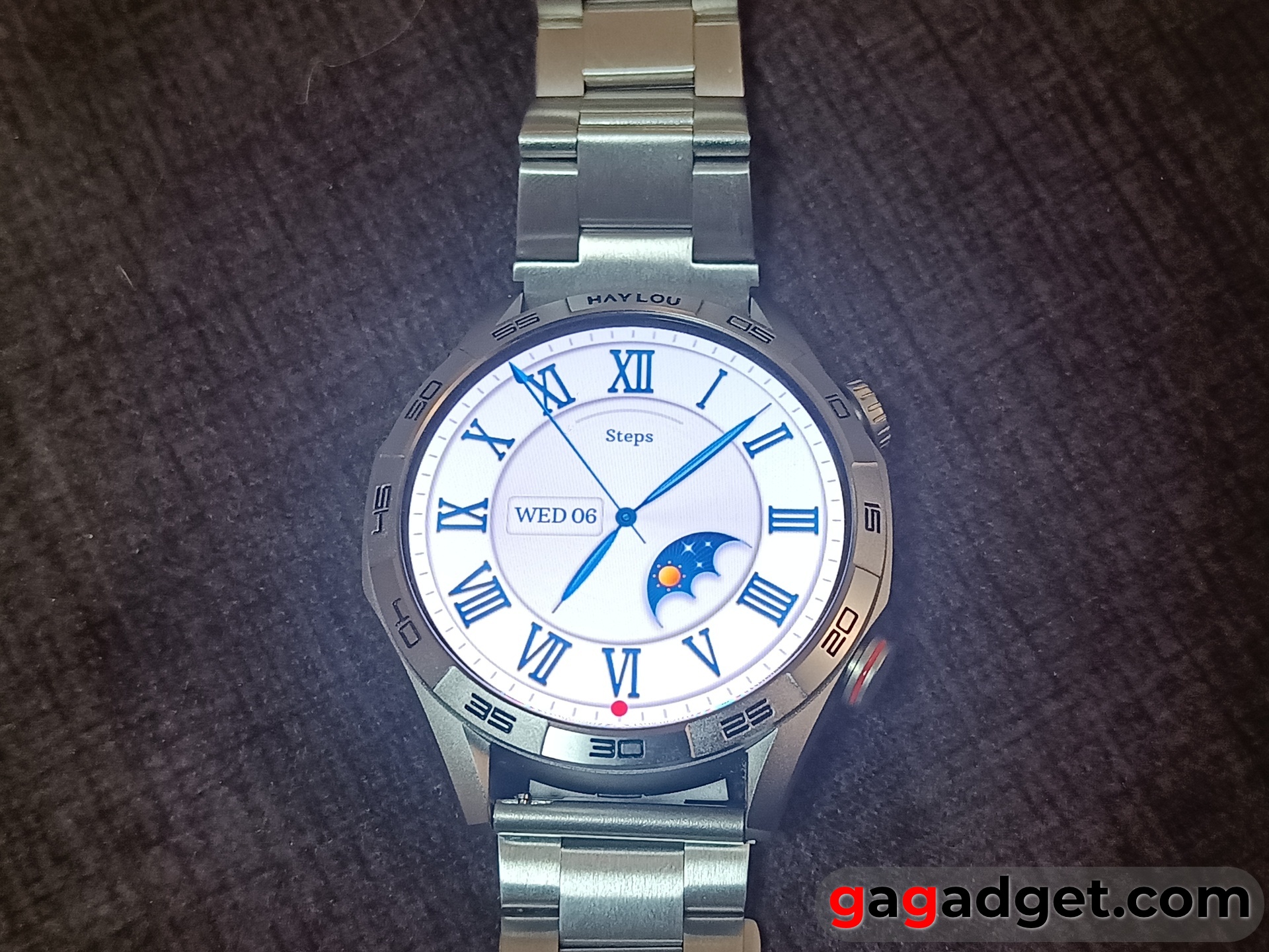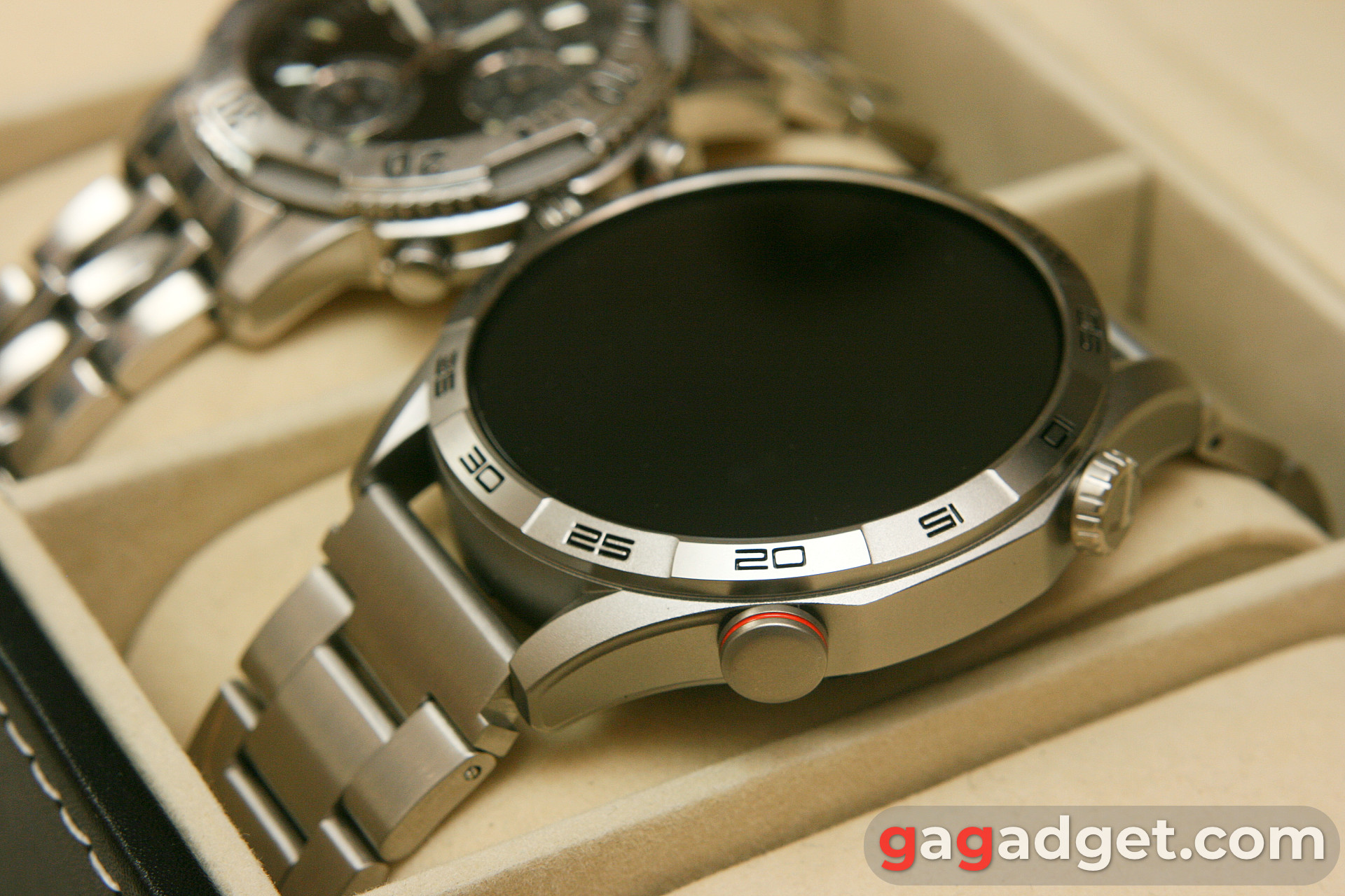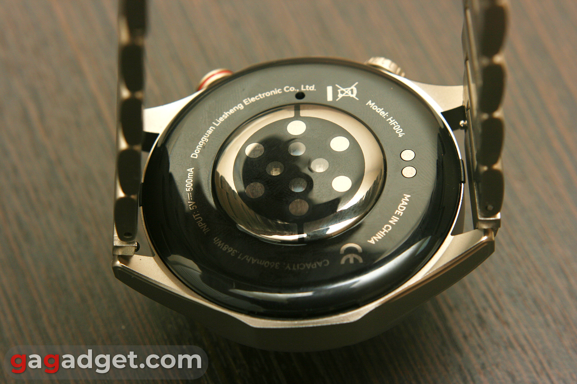 - jest to dość duży, klasycznie ukształtowany zegarek z wysokiej jakości wyświetlaczem AMOLED i metalową obudową odporną na kurz i wodę IP68;