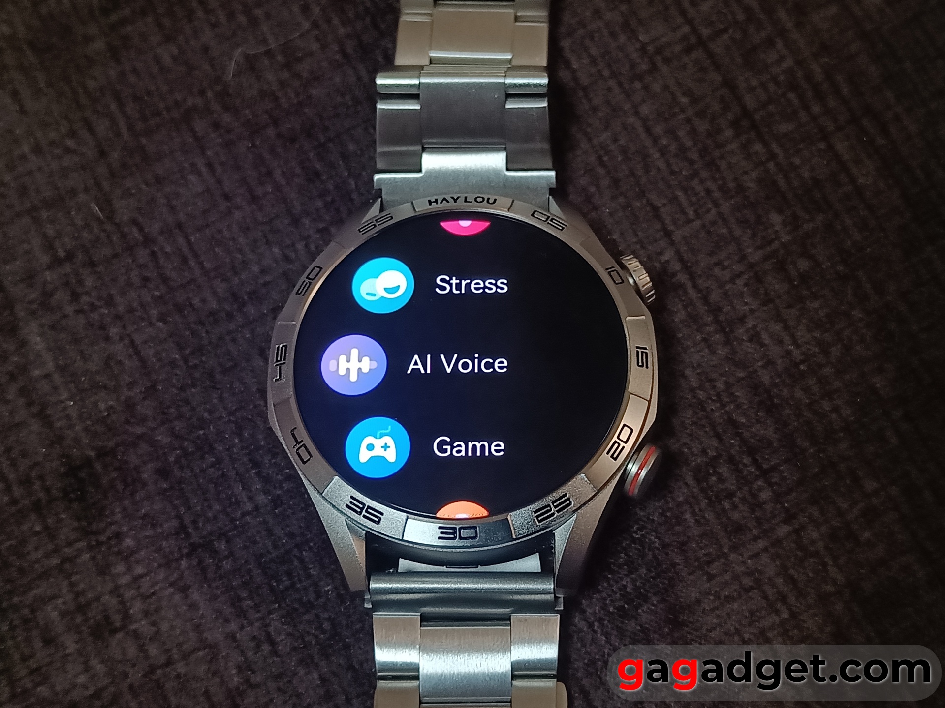 Funkcje głosowe. Zegarek jest w stanie pracować w trybie zestawu słuchawkowego bluetooth, w tym celu jest wyposażony w mikrofon i głośnik. Można zarówno odbierać połączenia przychodzące na telefon, jak i dzwonić na ulubione numery, a nawet wybierać dowolny numer z klawiatury ekranowej. Dostępna jest pozycja SOS, umożliwiająca połączenie alarmowe z ustawionym numerem. Osobna pozycja menu odpowiada za wywołanie asystenta głosowego (używany jest ten, który działa na smartfonie).