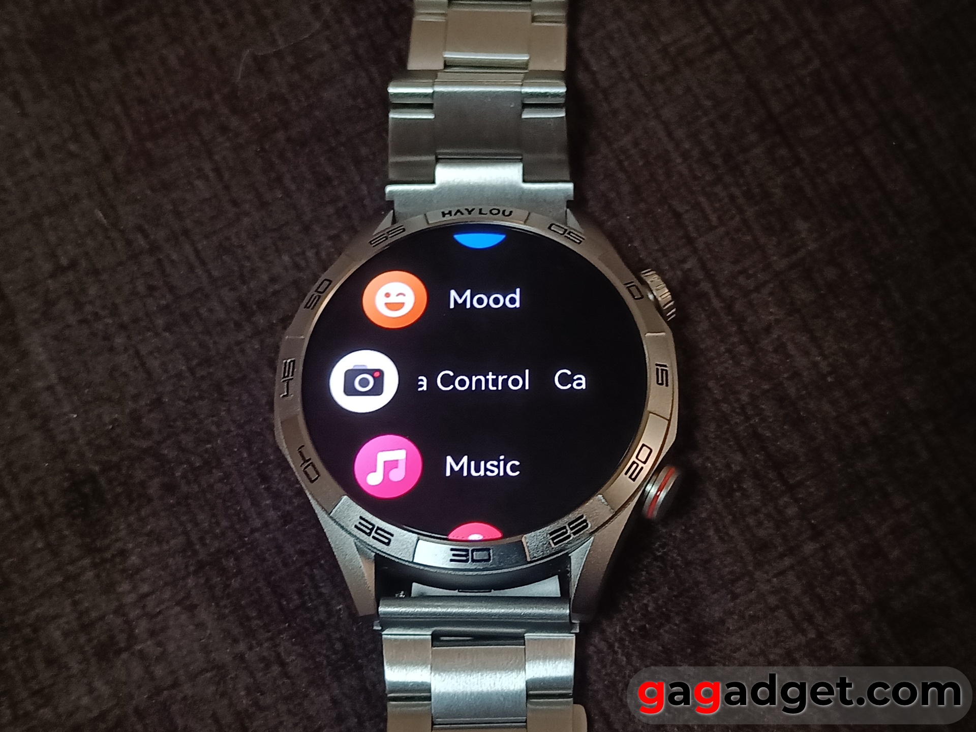 Wszystkimi innymi funkcjami nawigacyjnymi zajmuje się ekran dotykowy. Gesty od lewej do prawej i od góry do dołu otwierają dwie różne "kurtyny" dla szybkiego dostępu do różnych funkcji, przesunięcie od dołu do góry wyświetla listę powiadomień otrzymanych ze smartfona, a gest od prawej do lewej strony głównego pokrętła pozwala przewijać oddzielne ekrany informacyjne z wykresami aktywności, tętna, stresu, tlenu i snu, a także ekran sterowania muzyką i prognozą pogody.
