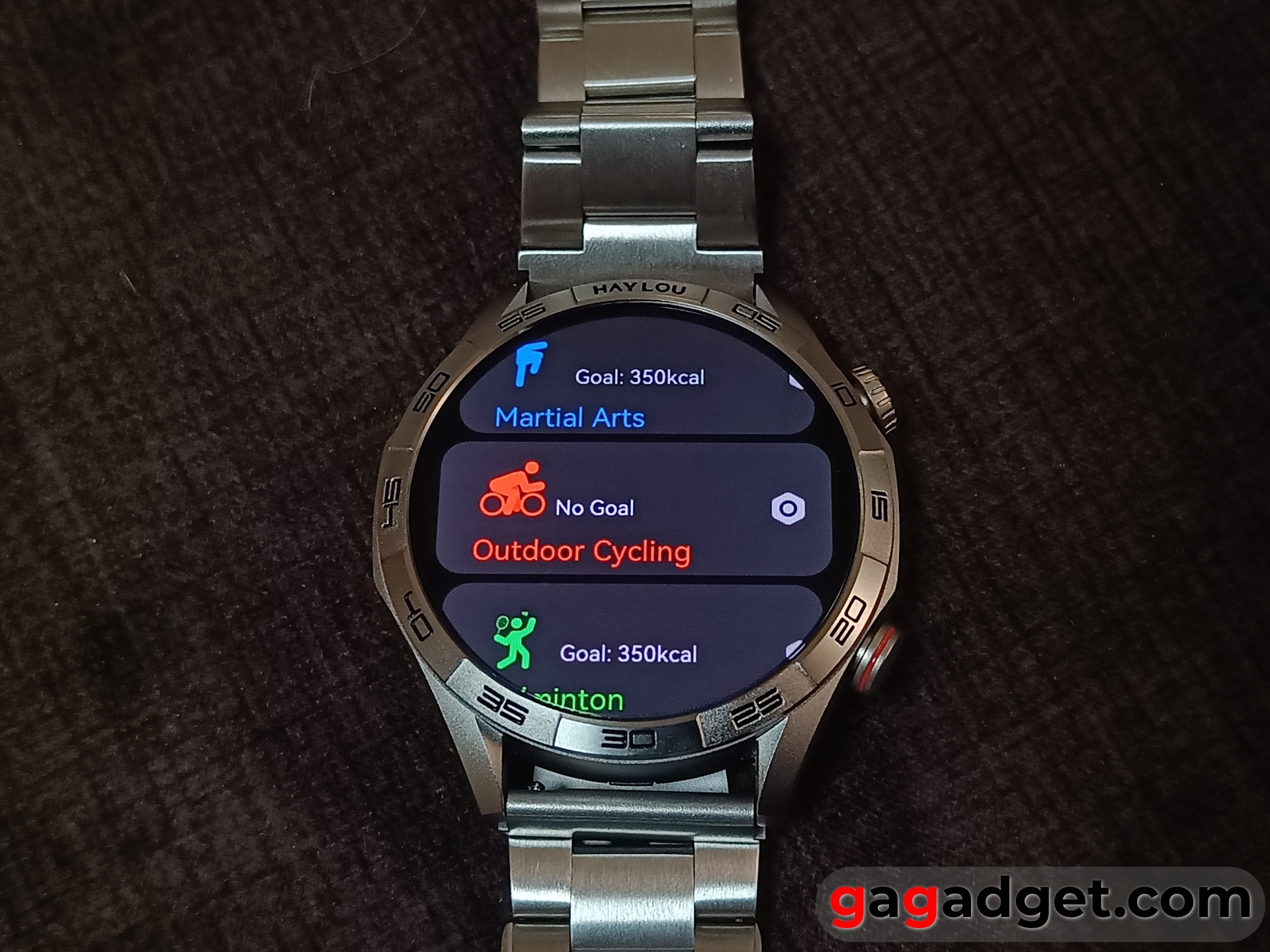 Jak już wiemy, są tylko trzy elementy sterujące: ekran dotykowy i dwa fizyczne przyciski. Górny przycisk włącza wyświetlacz, aby wyświetlić pokrętło, a jego ponowne naciśnięcie otwiera menu. Obracanie tego przycisku umożliwia przewijanie list lub różnych stylów wybierania. Dolny przycisk po prostu włącza listę sportów, aby dalej uruchomić trening, ponowne naciśnięcie wyłącza listę i przenosi nas do głównego pokrętła. Jednak w ustawieniach można przypisać ten przycisk do wywoływania dowolnej innej sekcji menu.
