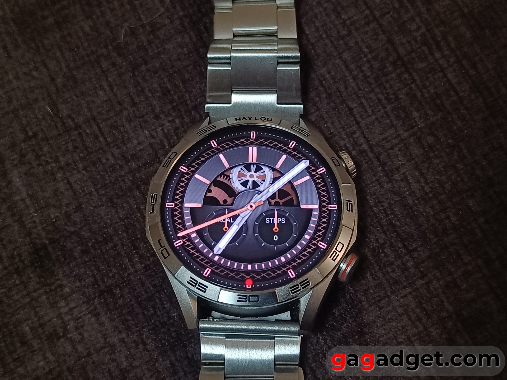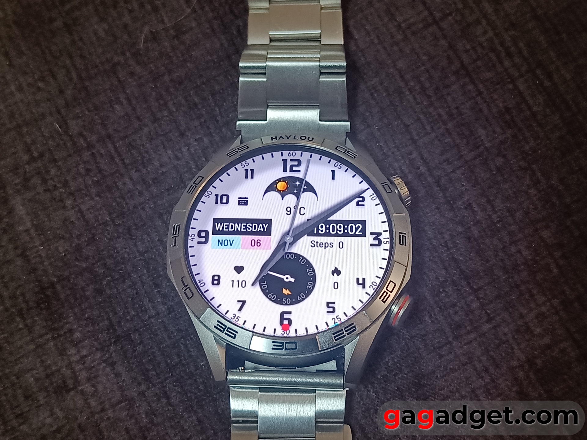 Haylou Solar 5 to dość duży zegarek klasycznego typu, z okrągłym wyświetlaczem i stałym bezelem. Pięciominutowe znaczniki są wygrawerowane na ramce, a 12-godzinny segment zawiera nazwę marki. Średnica koperty zegarka wynosi 48 mm, odległość między uszami 53 mm, maksymalna grubość 13,5 mm, a szerokość bransolety lub paska 22 mm. Główna część koperty jest matowa i metaliczna, a segmenty bezela na przemian różnią się nieznacznie fakturą powierzchni.