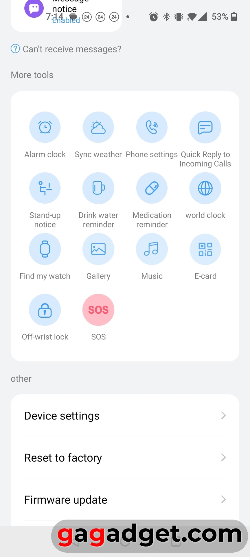 Podstawowe narzędzia. budzik, stoper, dwa rodzaje timerów ("pomodoro" i zwykły), kalkulator, latarka (jasno świecący wyświetlacz, nie ma oddzielnej diody LED), prognoza pogody. Jest funkcja sterowania aparatem, ale podobnie jak w innych zegarkach Haylou, nie jest to emulacja uniwersalnego przycisku bluetooth, ale sterowanie migawką prostego aparatu wbudowanego w aplikację Bluetooth Fun. Oznacza to, że nie można kontrolować fotografowania w zwykłej aplikacji aparatu, ani używać zegarka jako wizjera, a szkoda.