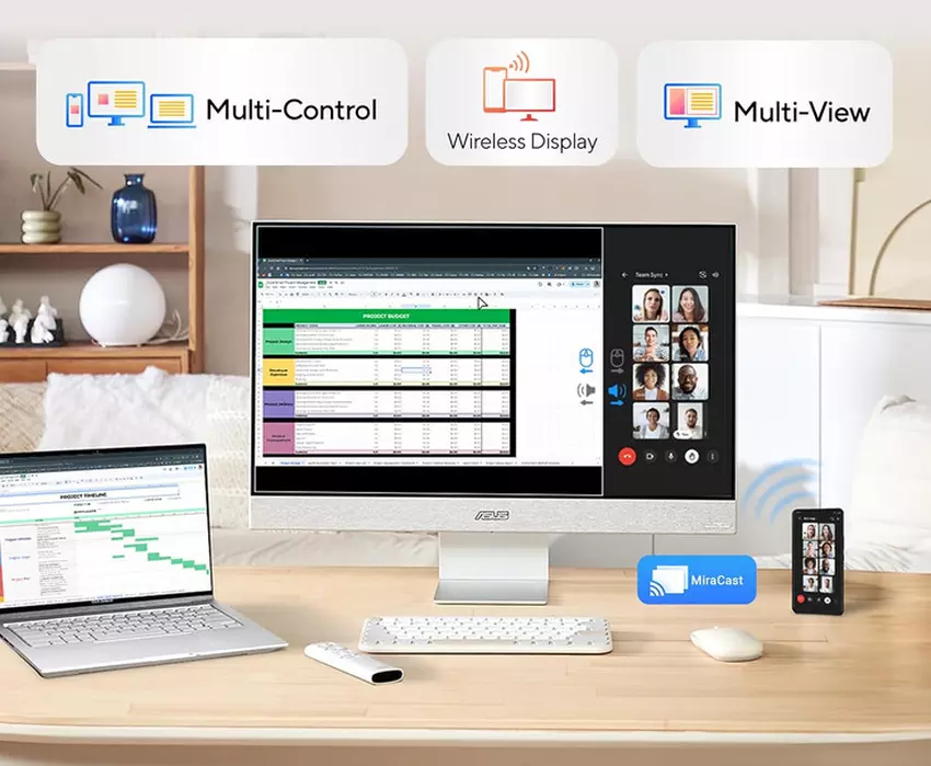 Jako centrum rozrywki, ZenScreen Smart MS27UC posiada Google TV, dwa konfigurowalne głośniki Harman Kardon o mocy 5 W, a także Bluetooth 5.2 i Wi-Fi. Ponadto możliwe jest strumieniowanie treści za pośrednictwem Chromecast i Miracast.