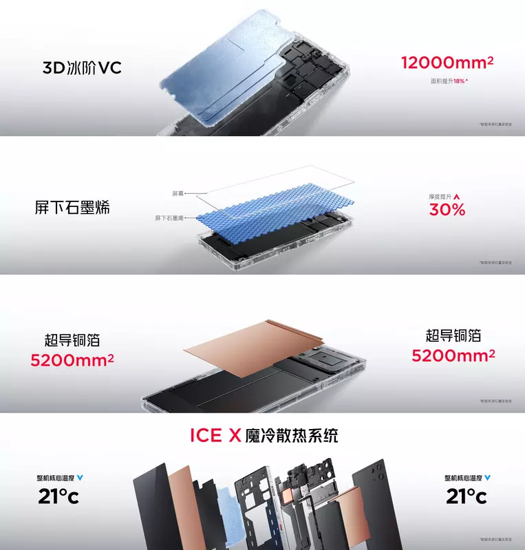 Oba smartfony są skierowane do graczy i posiadają zaawansowany system chłodzenia, który obejmuje komorę parowania 3D, folię miedzianą i warstwę grafenu. Po raz pierwszy w serii zastosowano chłodzenie ciekłym metalem i aktywne chłodzenie z wentylatorem odśrodkowym.