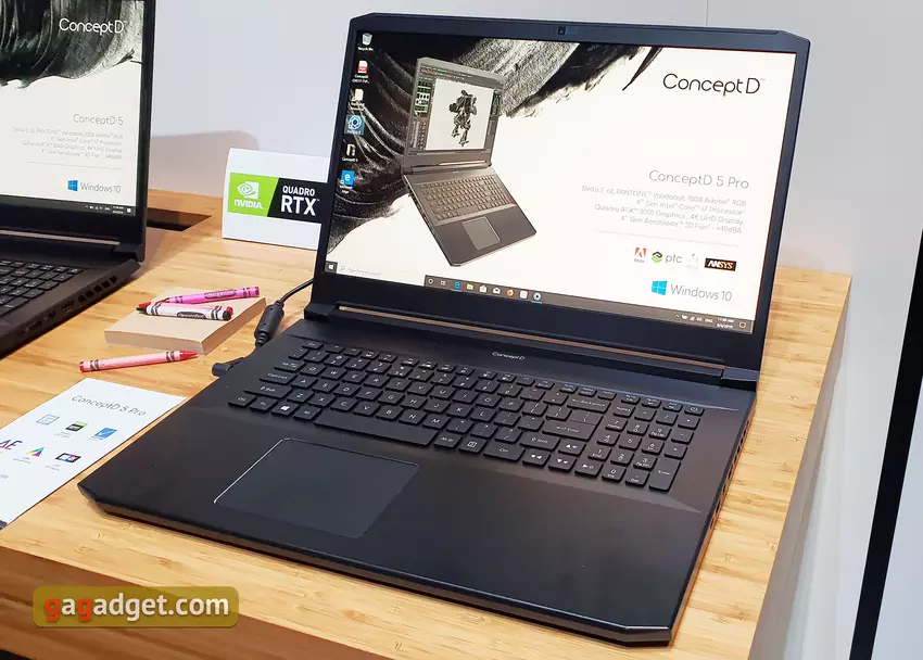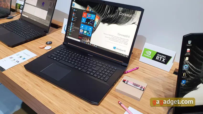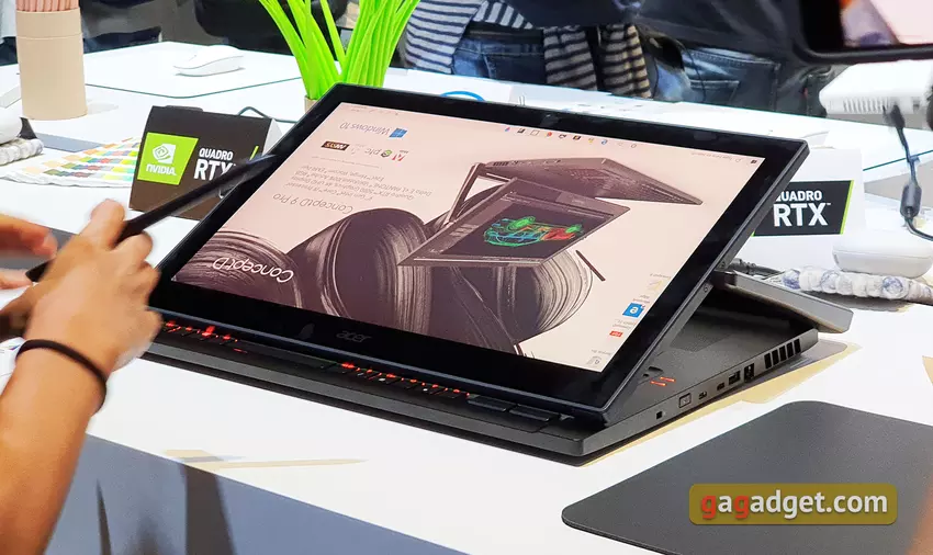 Wysokiej klasy model ConceptD 9 Pro otrzymał przekształcalną konstrukcję z obrotowym ekranem dotykowym na zastrzeżonym zawiasie Ezel Aero. Laptopa można używać w różnych trybach: laptop, tablet lub przesuwać ekran bliżej użytkownika. ConceptD 9 Pro jest wyposażony w 17,3-calowy ekran dotykowy 4K z certyfikatem PANTONE i fabryczną kalibracją, dzięki czemu błąd koloru EE nie przekracza 1, a gama kolorów stanowi 100% przestrzeni kolorów Adobe RGB. Wewnątrz zainstalowane są procesory nawet do Intel Core i9, karta graficzna Quadro RTX 5000 z 16 GB pamięci wideo i 32 GB pamięci RAM. Model zostanie wyposażony w rysik Wacom EMR, który zostanie przymocowany do korpusu za pomocą magnesu. Rozpoznawane są 4096 poziomów nacisku i pochylenia. Cena rozpocznie się od 29 000 złotych, trafi do sprzedaży w czwartym kwartale 2019 roku.