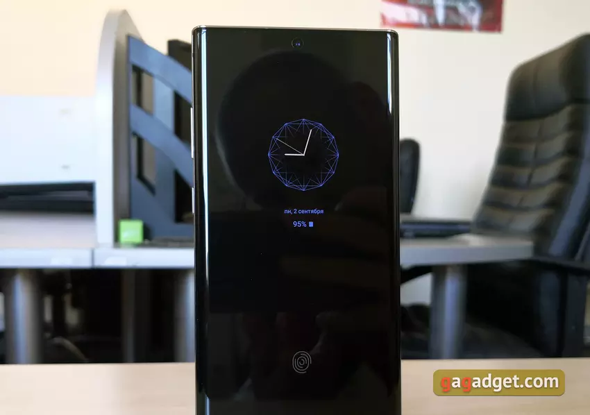 Skaner linii papilarnych znajdował się na tylnym panelu, teraz jest wbudowany w ekran. Używany jest ultrasonograf, podobnie jak w flagowej linii Galaxy S10. Nawet wtedy, na końcowym oprogramowaniu, działało bardzo dobrze. Najwyraźniej oprogramowanie zostało „ukończone”, aw Galaxy Note10 + działa jeszcze szybciej i dokładniej. Szybko zbliżył się do bardziej tradycyjnych rozwiązań. Oczywiście folia ochronna w ogóle jej nie zakłóca (w każdym razie fabryczna).
