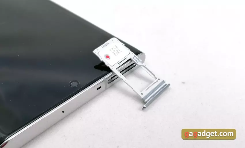 Taca jest standardowo wyposażona w hybrydowy projekt, zamiast drugiej karty SIM można zainstalować MicroSD. Chociaż nie jestem pewien, czy będzie to potrzebne z 256 GB pamięci wewnętrznej w podstawowej konfiguracji: