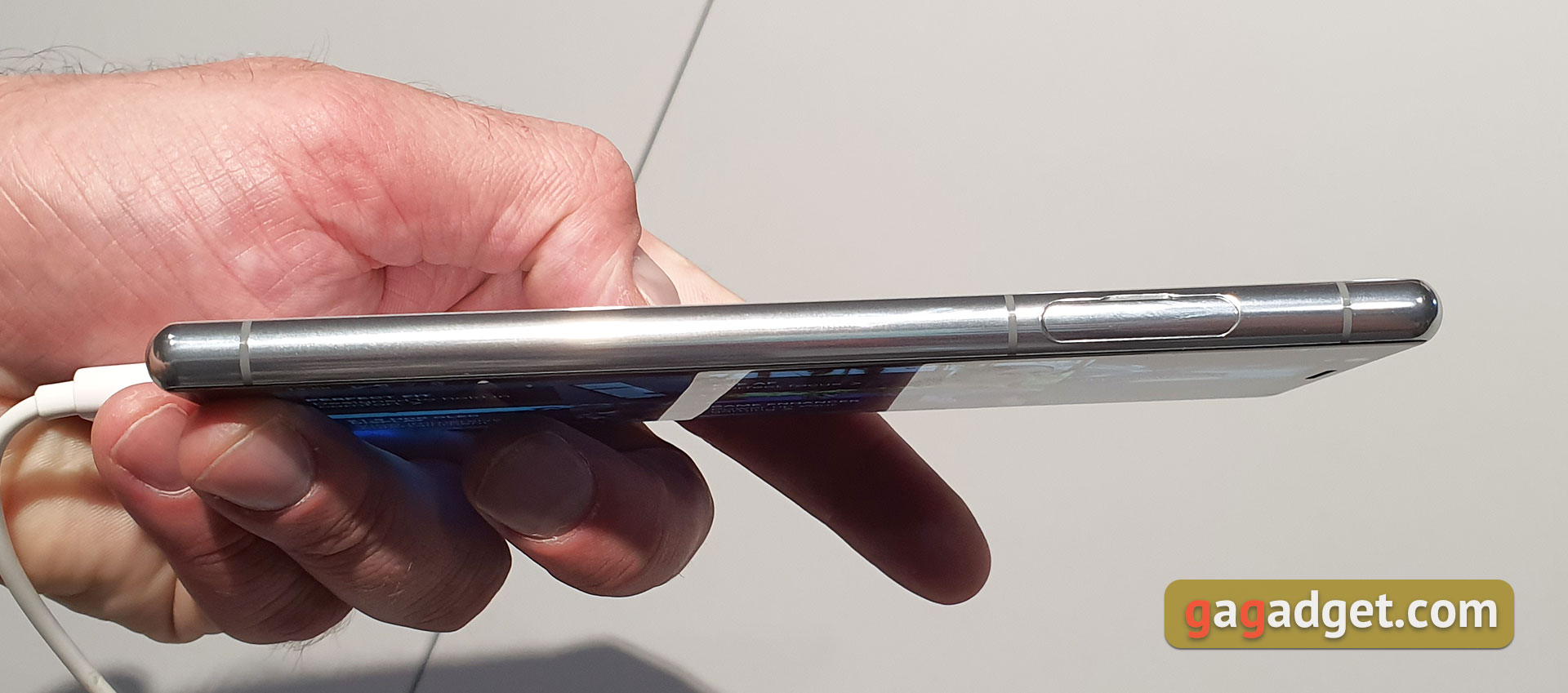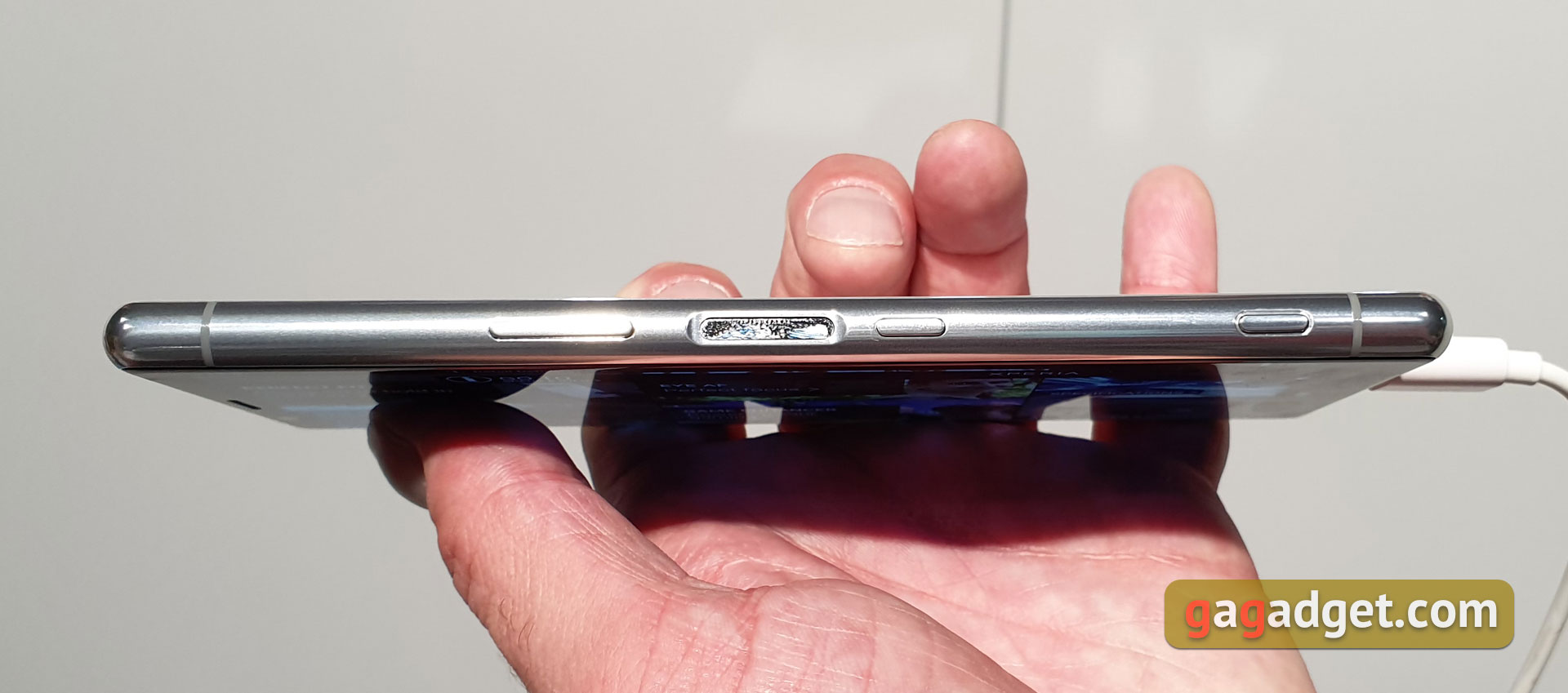 Wszystkie elementy funkcjonalne na zwykłych miejscach. Wszystkie przyciski i skaner linii papilarnych znajdują się po prawej stronie. Decyzja, jak pokazała praktyka z poprzednich modeli, jest nieco kontrowersyjna. Z jednej strony wygodny jest osobny przycisk aparatu. Z drugiej strony duża liczba przycisków utrudnia korzystanie ze smartfona z różnymi manualnymi stabilizatorami. Tak, niewielu użytkowników korzysta z nich, ale jest taki moment. Po lewej stronie smartfona jest taca, na dole głośnik i Type-C.