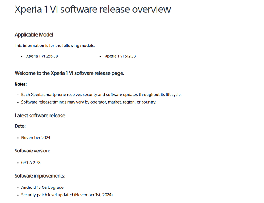Sony wydało pierwszą dużą aktualizację systemu operacyjnego dla smartfona Xperia 1 VI, który został zapowiedziany w połowie maja 2024 roku.