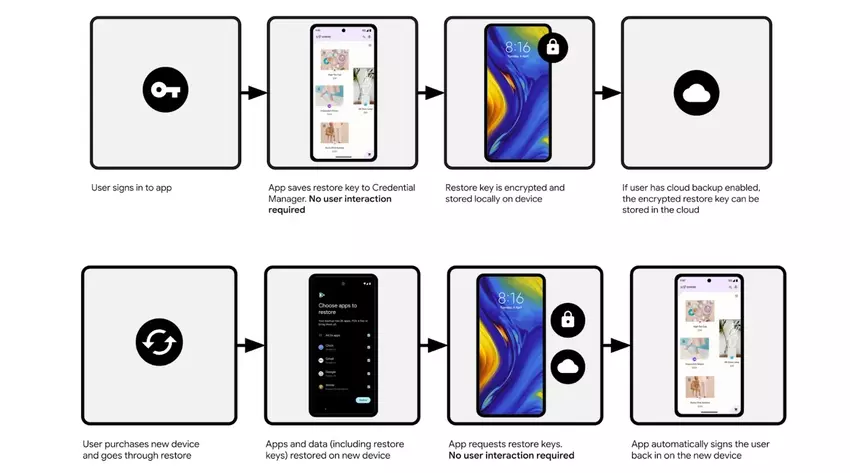 Teraz użytkownicy nie muszą ręcznie logować się do każdej aplikacji podczas przełączania urządzeń. Po zalogowaniu się do aplikacji telefon przechowuje tak zwany klucz przywracania, który uwierzytelnia tożsamość użytkownika. Klucz ten jest szyfrowany i przechowywany lokalnie na urządzeniu oraz synchronizowany z kontem użytkownika po włączeniu kopii zapasowej w chmurze.