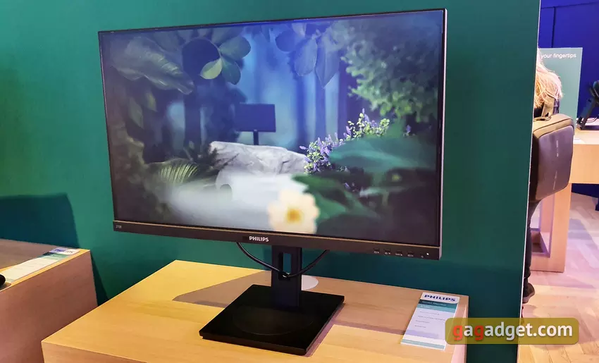 Niezwykle ważną częścią działalności firmy Philips w zakresie monitorów jest segment B2B, ale firma nie ma do tego zwykłego podejścia. Chociaż ogólnie koncepcja segmentu B2B jest bardzo szeroka, szczególnie w odniesieniu do monitorów, a granice między modelami „konsumenckimi” i B2B są bardzo rozmyte. Wyjątkiem są być może tylko specjalistyczne monitory. Na przykład modele sensoryczne z ochroną przed wilgocią, które koncentrują się na zastosowaniu w parkietach handlowych. Większość producentów oferuje proste, niedrogie rozwiązania, które praktycznie nie różnią się od siebie i nie oferują nic nowego. Philips woli oferować użytkownikom bardziej interesujące rozwiązania z ich unikalnymi funkcjami. Na stoisku można było akurat zapoznać się z nowymi modelami.