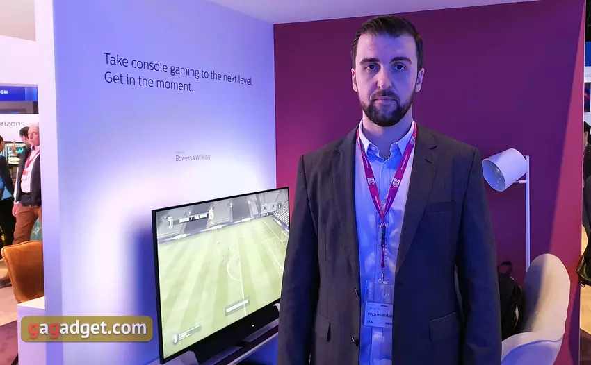 Philips doskonale zdaje sobie sprawę z stosunkowo szybkiego wydania konsol nowej generacji, a Momentum jest dla nich w porządku. Starsza 55-calowa Philips Momentum 558M1RY otrzymała 10-bitową matrycę UltraClear 4K o częstotliwości odświeżania 120 Hz i certyfikat VESA DisplayHDR 1000. Za dźwięk odpowiada soundbar opracowany przez Bowers & Wilkins. Z oczywistych względów nie można było ocenić dźwięku na wystawie, ale sądząc po wymiarach, systemy audio będą więcej niż wystarczające do gier i filmów.