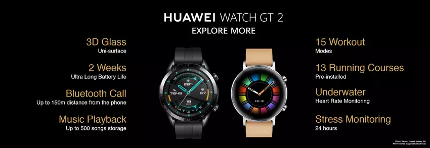W przeciwieństwie do zeszłorocznego Watch GT, nowy model otrzymał dwie wersje - 42 i 46 mm. Większa wersja jest podobna do swojego poprzednika: 1,39-calowy wyświetlacz AMOLED o rozdzielczości 454 × 454.