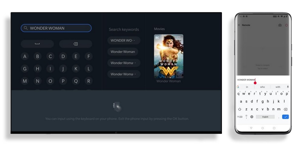 Możesz także sterować telewizorem za pomocą smartfona i aplikacji OnePlus Connect. Możesz drukować na nim zapytania wyszukiwania, robić zrzuty ekranu, uruchamiać aplikacje itp.